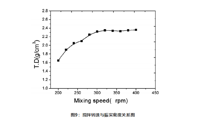 搅拌速度对晶体结晶过程影响较大,从而影响前驱体的振实密度。